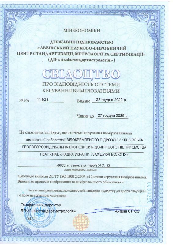 На базі сертифікованої комплексної лабораторії ВП «Львівська ГРЕ» ДП «Західукргеологія» з більш як 50-річним досвідом роботи надається широкий спектр послуг з проведення досліджень: